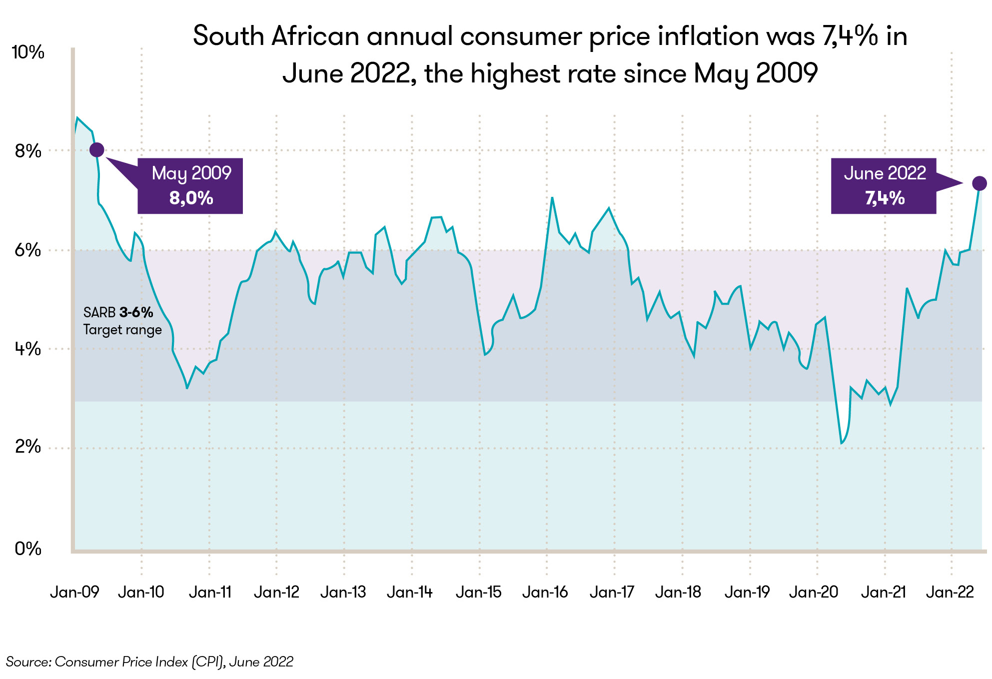 This is the highest rate since the 8% rate in May 2009. Between May and June 2022, the Consumer Price Index (CPI) increased by 1.1% (Stats SA).