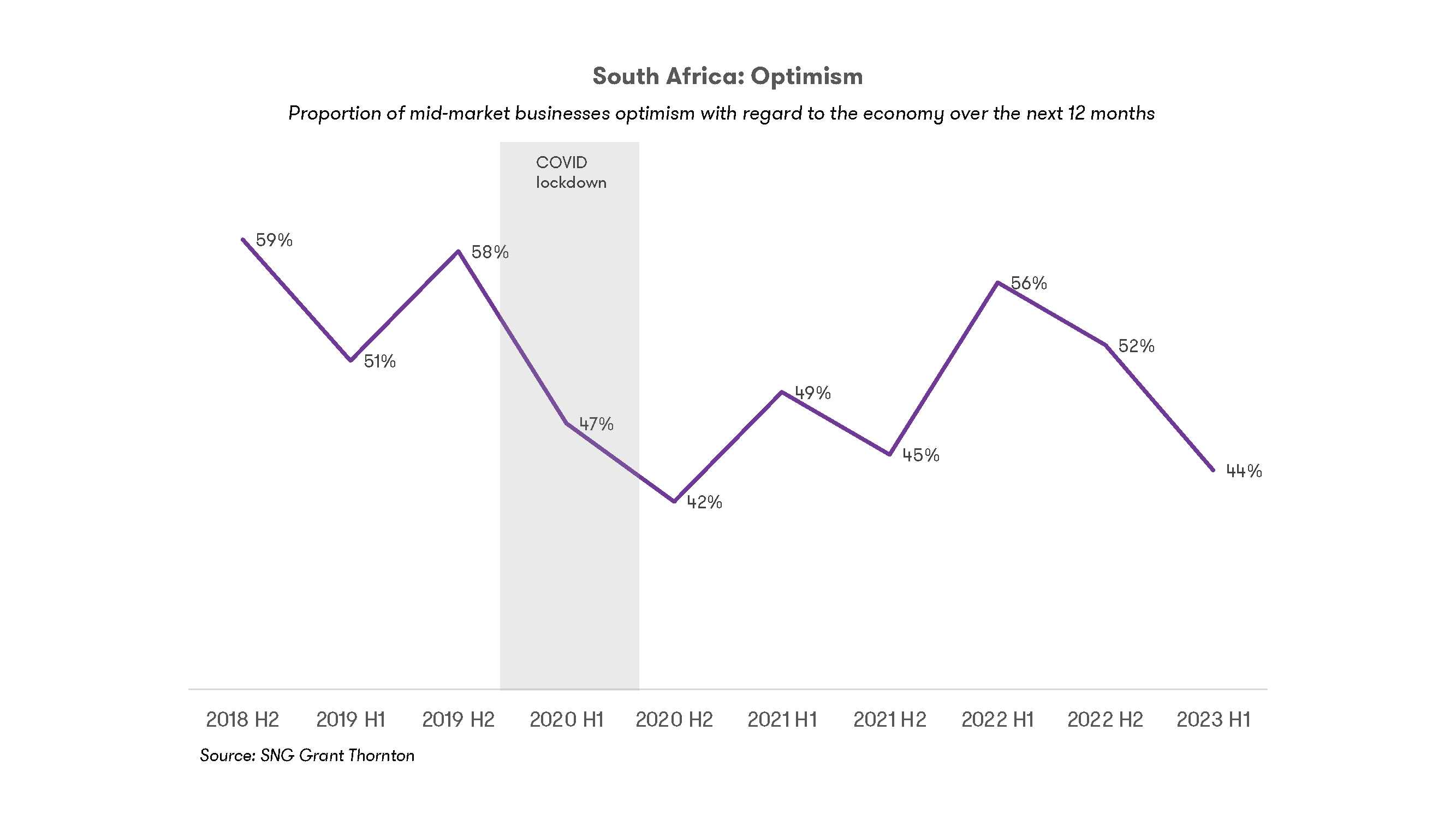 Recovery in inventories has helped to push GDP growth upwards while global economic activity has caused softness in commodity prices and downward pressure on the trade balance. Experts predict that domestic economic growth is set to run at around 1% over the coming year, with the possibility of reaching 2% in the absence of load-shedding. Although mid-market businesses have shown a decline in sentiment regarding the economy, South Africa's resilience in the face of challenges is a testament to its ability to weather economic storms.