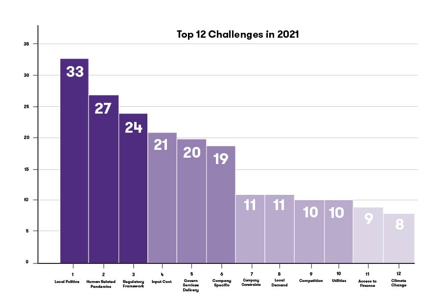 Businesses faced challenges such as instability in local politics, high levels of bureaucracy due to the pandemic, and limited access to financing. The government needed to take steps to address these challenges to improve the general business environment and promote entrepreneurship.